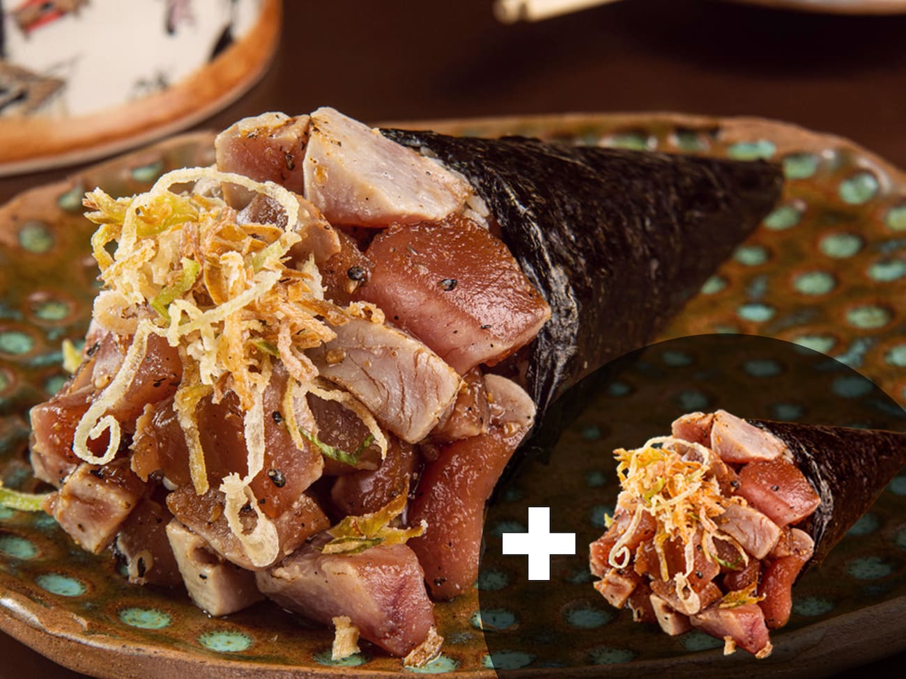 10 deliciosos roll de nori(alga) com camarões, gohan(arroz japonês), cream cheese e cebolinha para finalizar + Coca-Cola 250ml